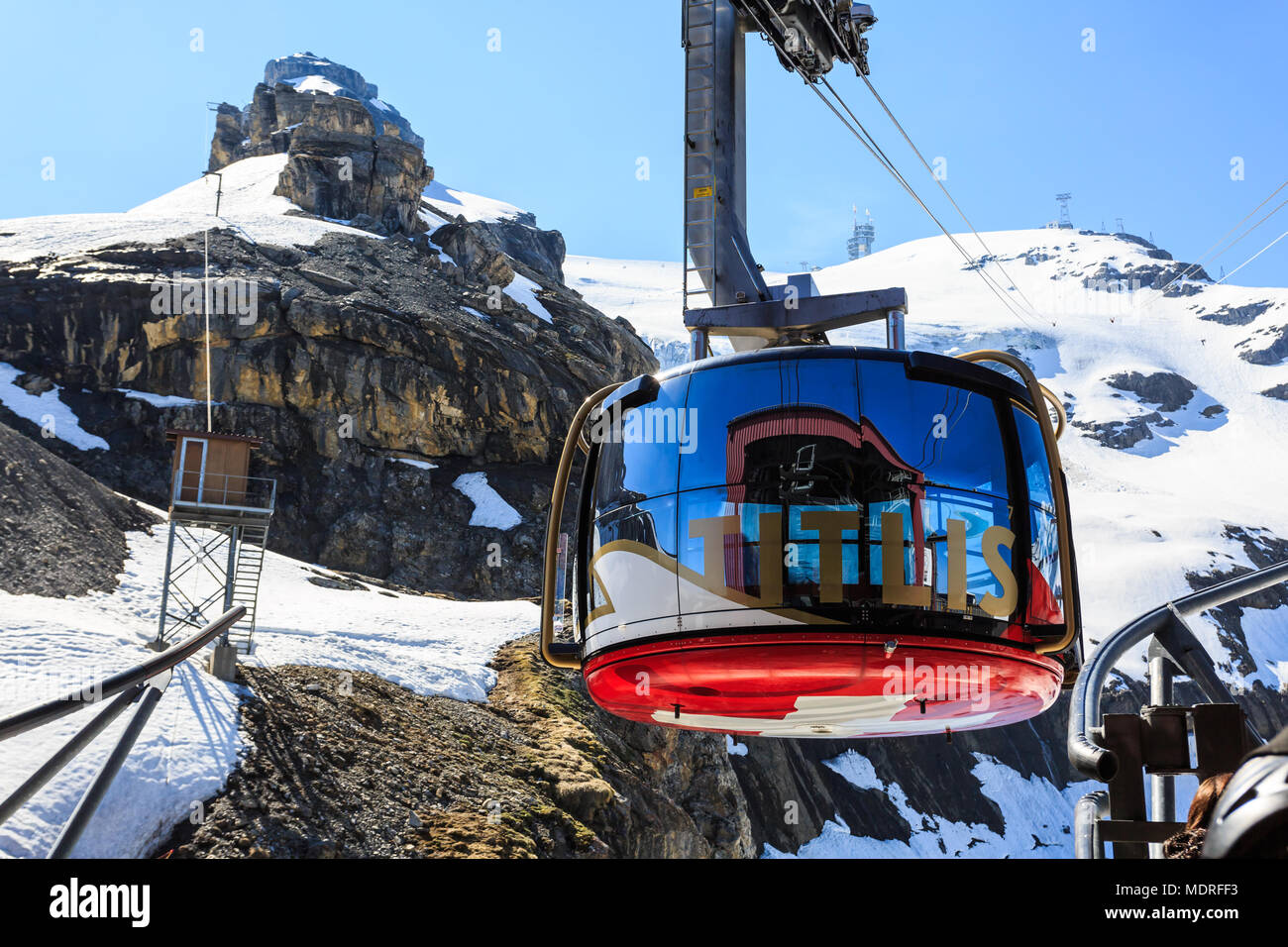 Mt Titlis Switzerland May 28 2017 A Gondola Of The Rotair Cable Car View From The Station On The Top Of The Mountain Rotair Gondolas Make A 36 Stock Photo Alamy